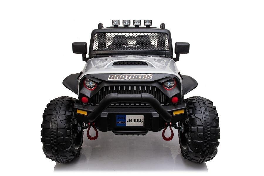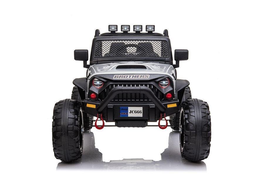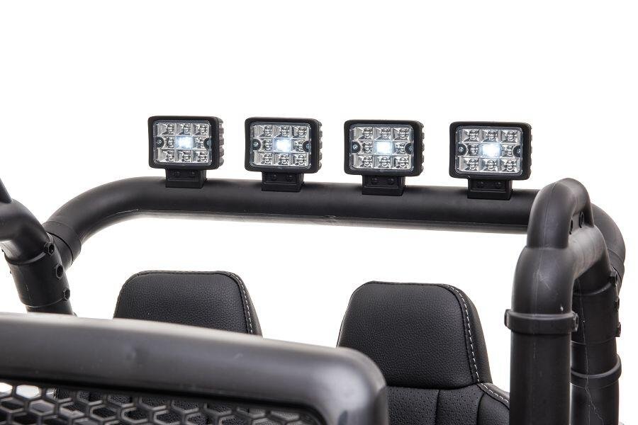 Wahlweise kann das Kind selbst mit Lenkrad und Gaspedal das Fahrzeug steuern oder Erwachsene nutzen die 2,4-GHz-4-Wege-Fernsteuerung, um das Fahrzeug zu kontrollieren. Ein MP3-Anschluss ist eingebaut, und der Sound kann reguliert werden. Mit den 2x 200W Elektromotoren hat das Fahrzeug genug Kraft, um Kinder mit einem Gewicht von bis zu 40 kg zu transportieren. Integrierte Scheinwerfer sorgen für zusätzliche Sichtbarkeit.