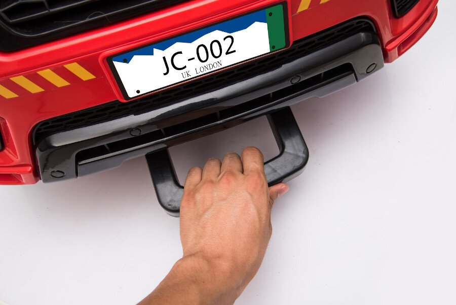 Das Kind kann selbst mit Lenkrad bzw. Gaspedal und die Erwachsenen können mit der 2,4Ghz Fernsteuerung das Fahrzeug kontrollieren. Es ist ein MP3 Anschluss eingebaut und Sound kann reguliert werden. Dank 2 x 12V Elektro Motoren hat er genug Kraft um die Kinder mit bis zu 30 kg tragen zu können. Es sind Scheinwerfer und LED.Polizei-Lichter eingebaut.